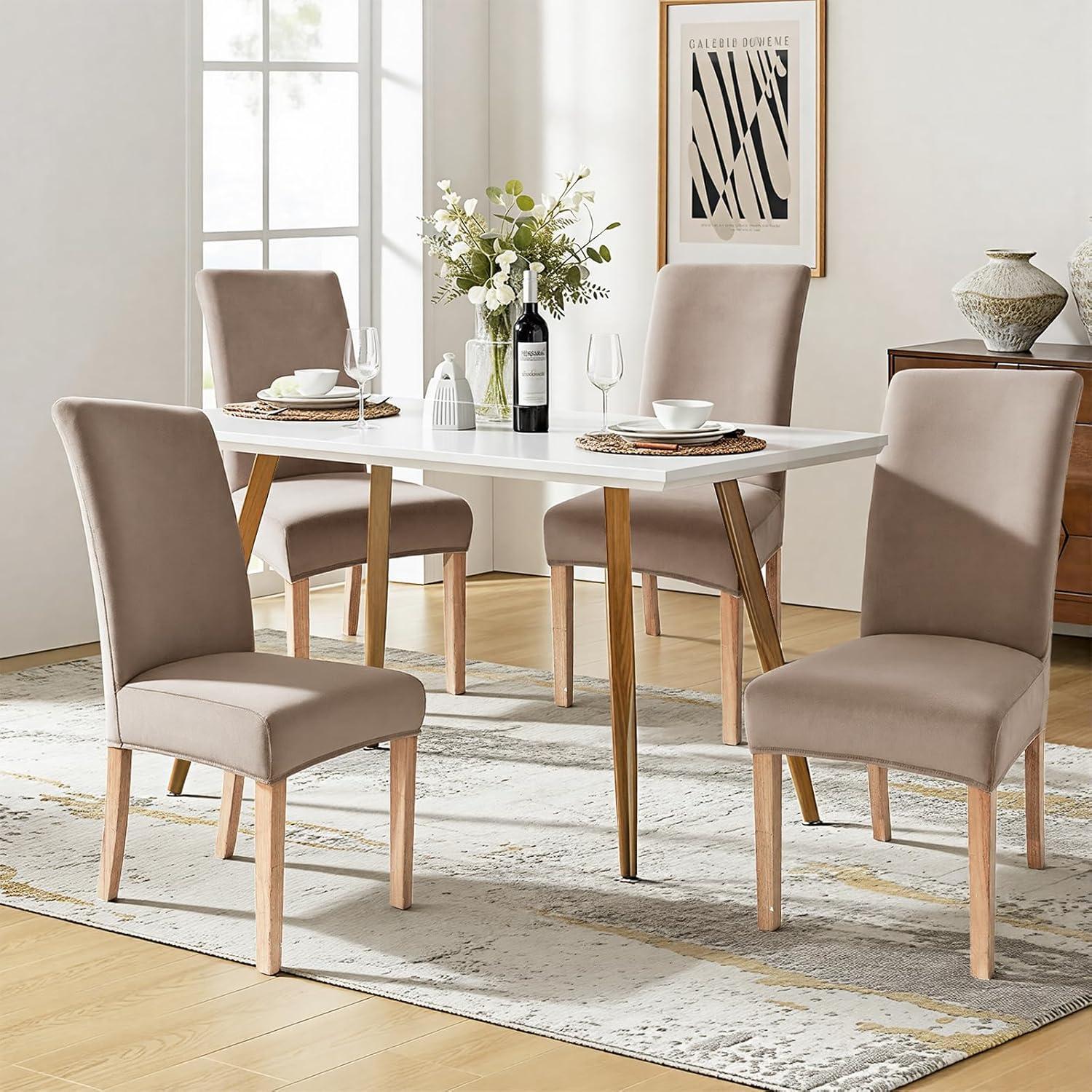 imageSmiry Velvet Stretch Chair Covers for Dining Room Set of 4 Soft Fit Removable Washable Kitchen Parsons Chair Slipcover Protector Dark GreenKhaki