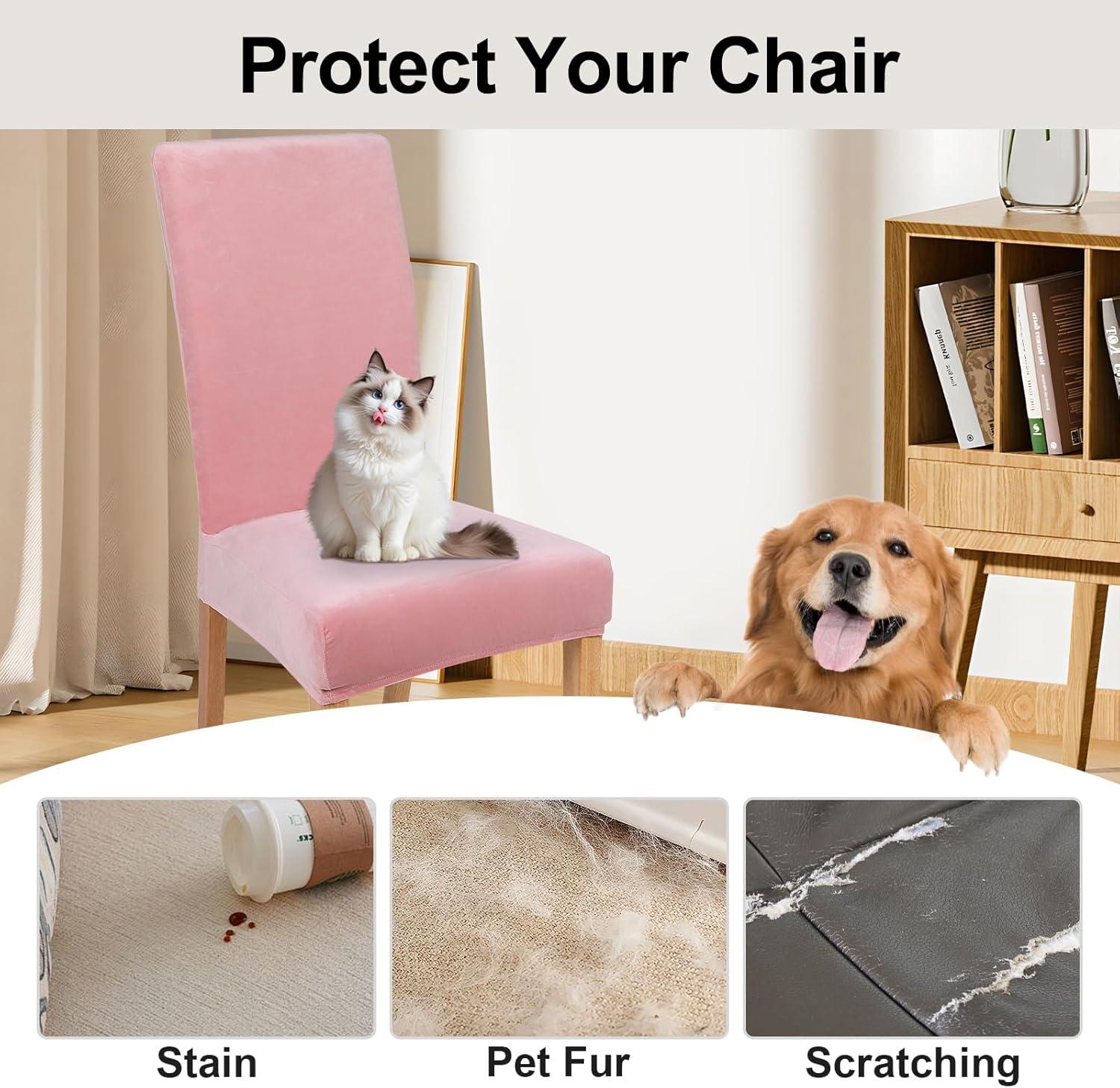 [Chair Protector] Velvet chair covers for dining chairs dress up and create a new look to your old dining room chairs. Protect furniture chair from stain, dust, daily wears and scratch. Suitable for families with kids and pets