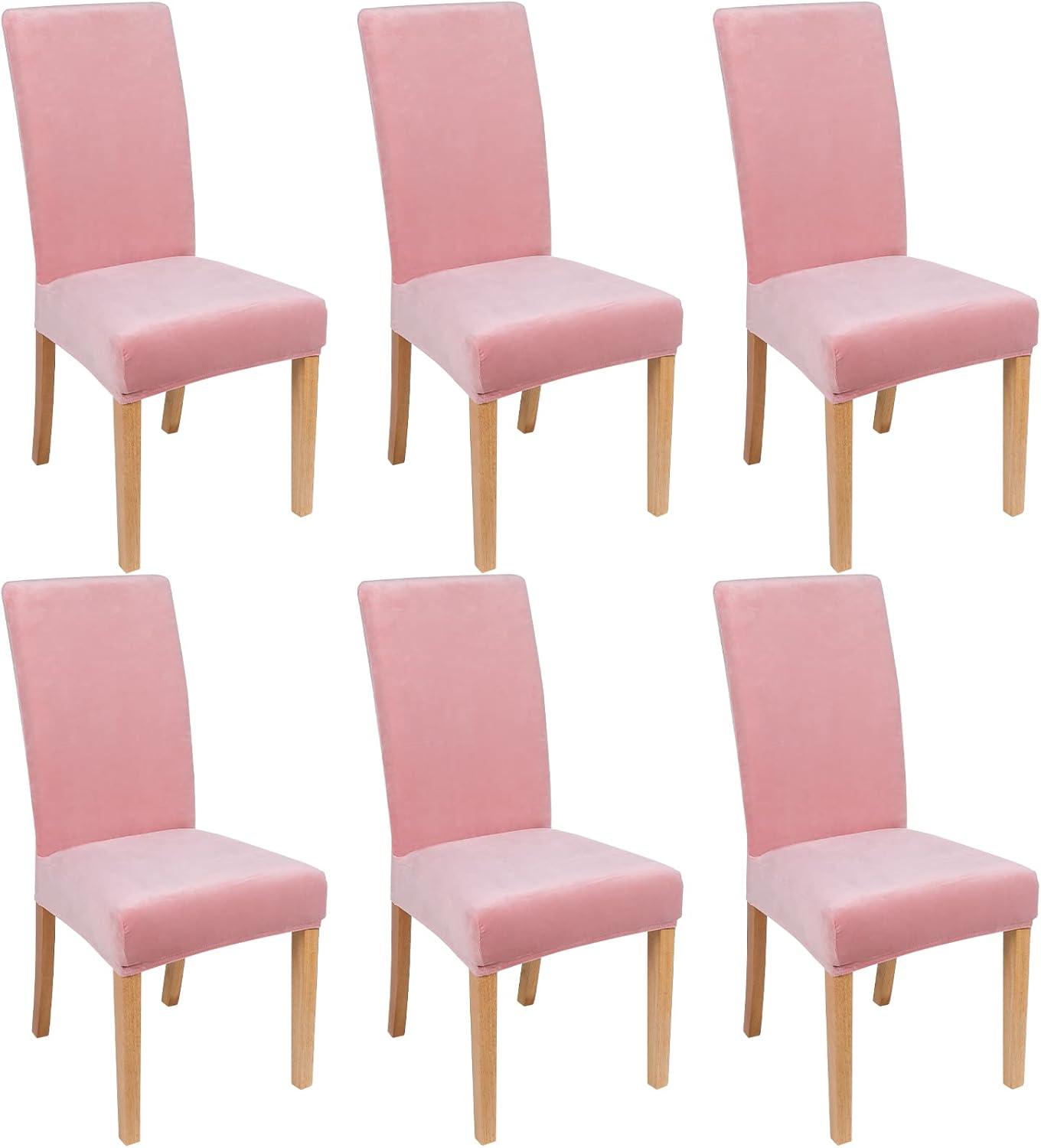 Smiry Velvet Stretch Chair Covers for Dining Room Set of 4, Soft Fit Removable Washable Kitchen Parsons Chair Slipcover Protector, Wine Red(Pink)
