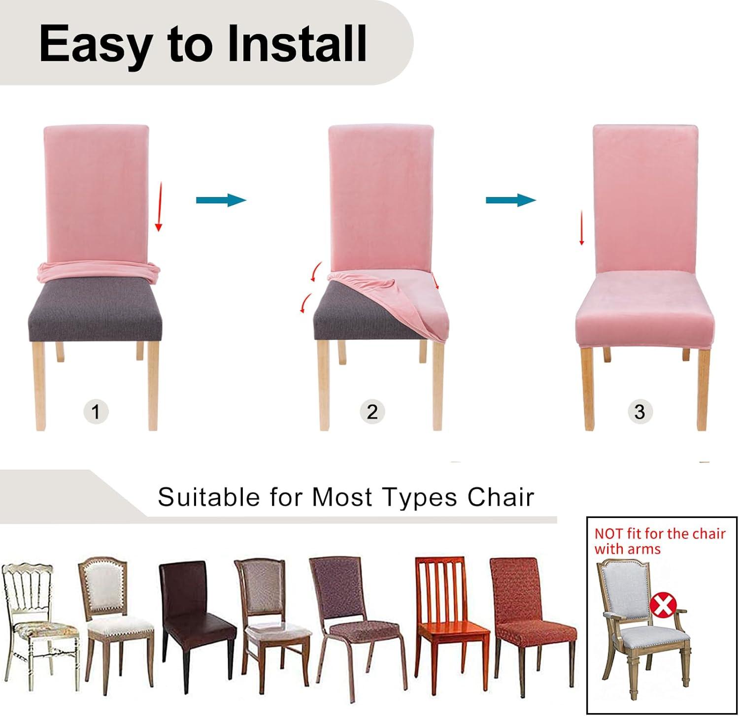 [Perfect Fit] Stretchable thick material velvet chair cover with sewn-in elastic hem ensures the dining chair covers fit securely on your chair, very easy to put on and take off. It covers the chair from the backrest to the seat, fit perfectly on most armless chairs and stay up. ♥NOT Fit for the chair with arms