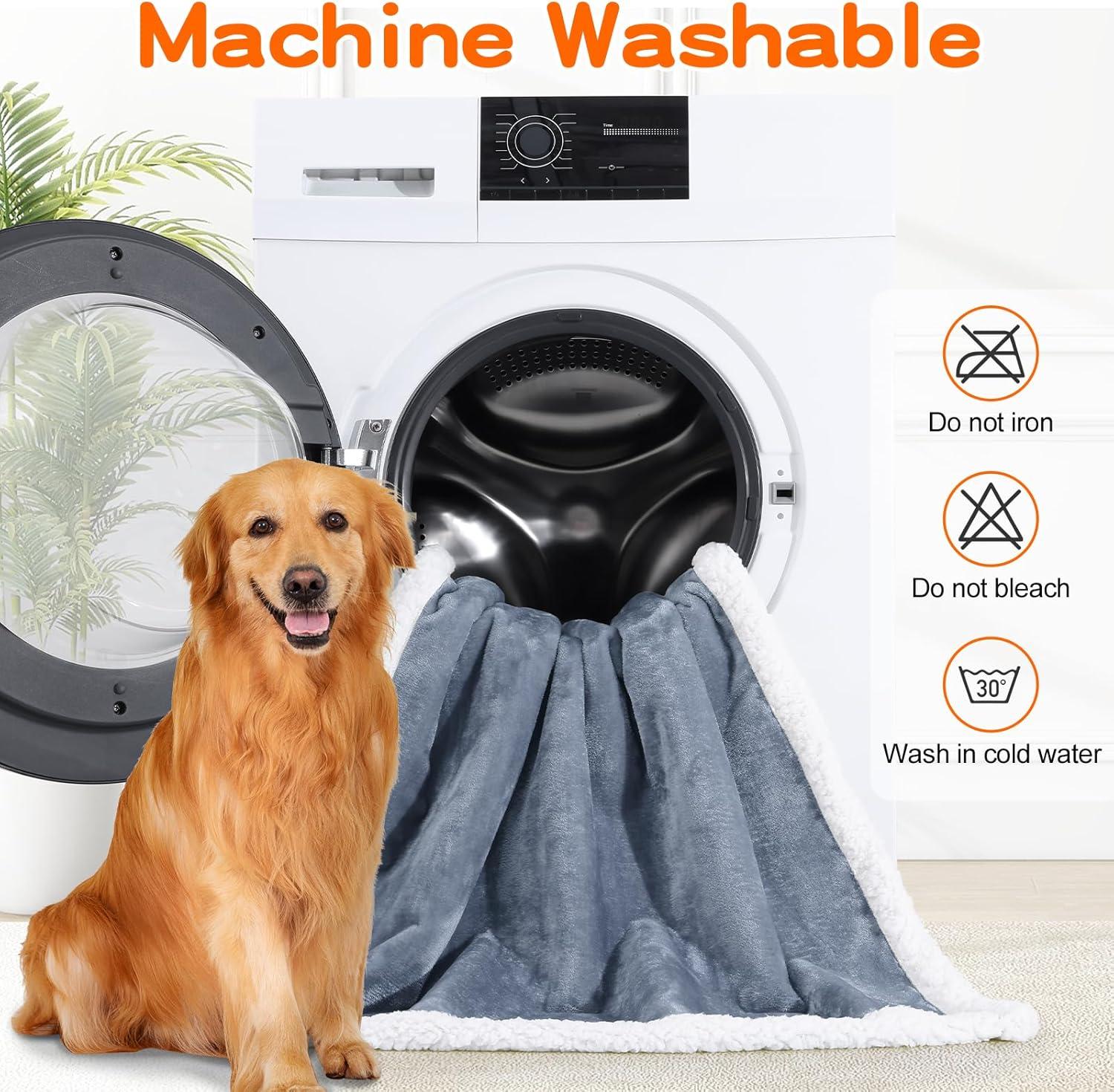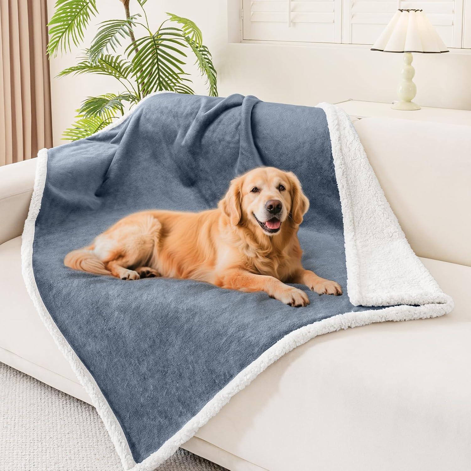 Smiry Waterproof Blanket Throw for Large Dogs, Soft Reversible Dog Blanket for Sofa Couch Bed, Washable Leakproof Sherpa Fleece Furniture Couch Cover Protector(50"x60", Grey/White)