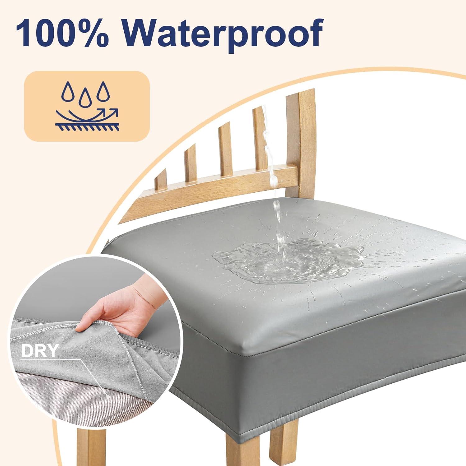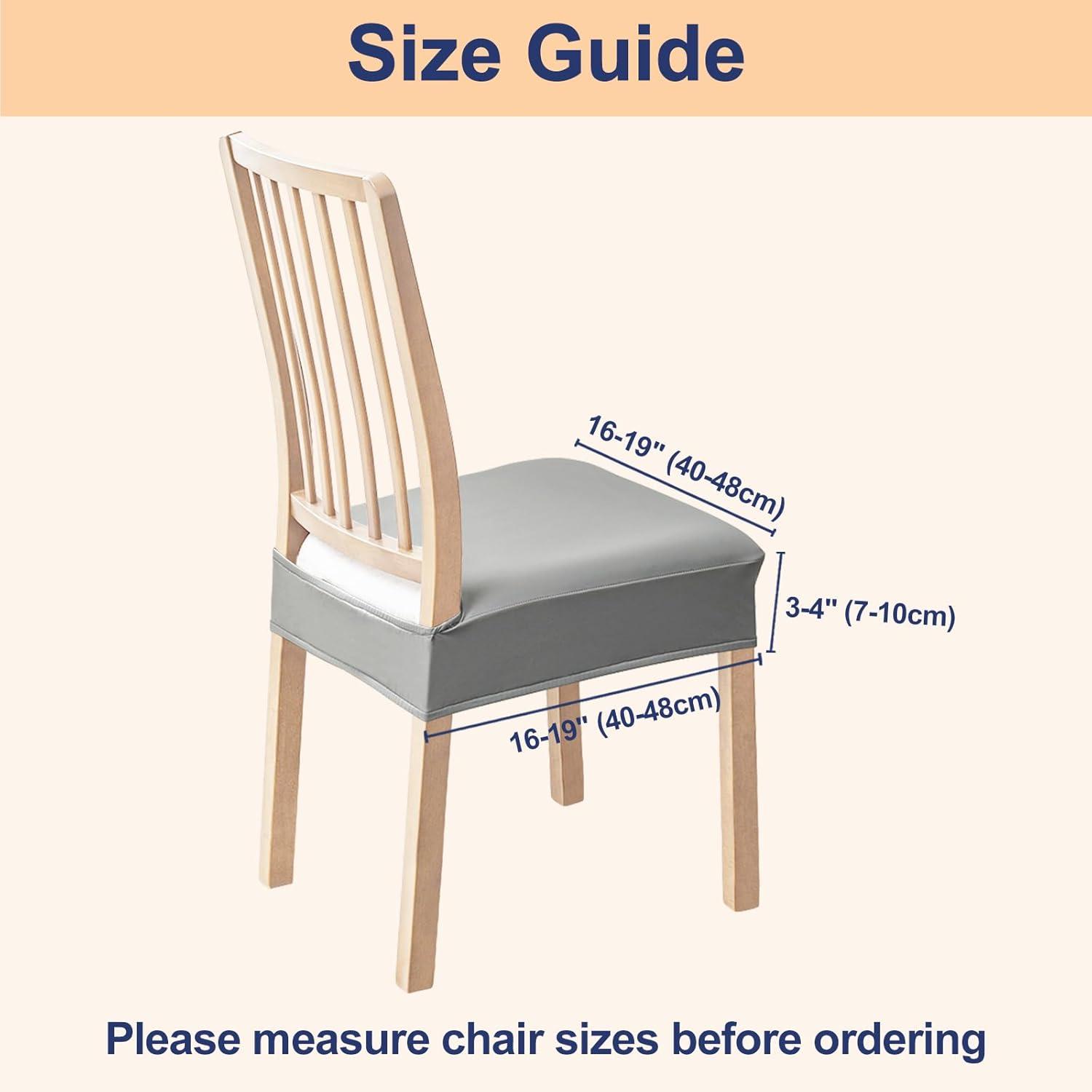 [Widely Use & Care] The PU Leather chair seat covers can be used for upholstered chairs in dining room, kitchen, banquet, restaurants, party etc. Waterproof kitchen chair covers are easy to wipe off spills with a damp cloth. Machine Washable; Air Dry; Don't Bleach; Iron on Low Heat