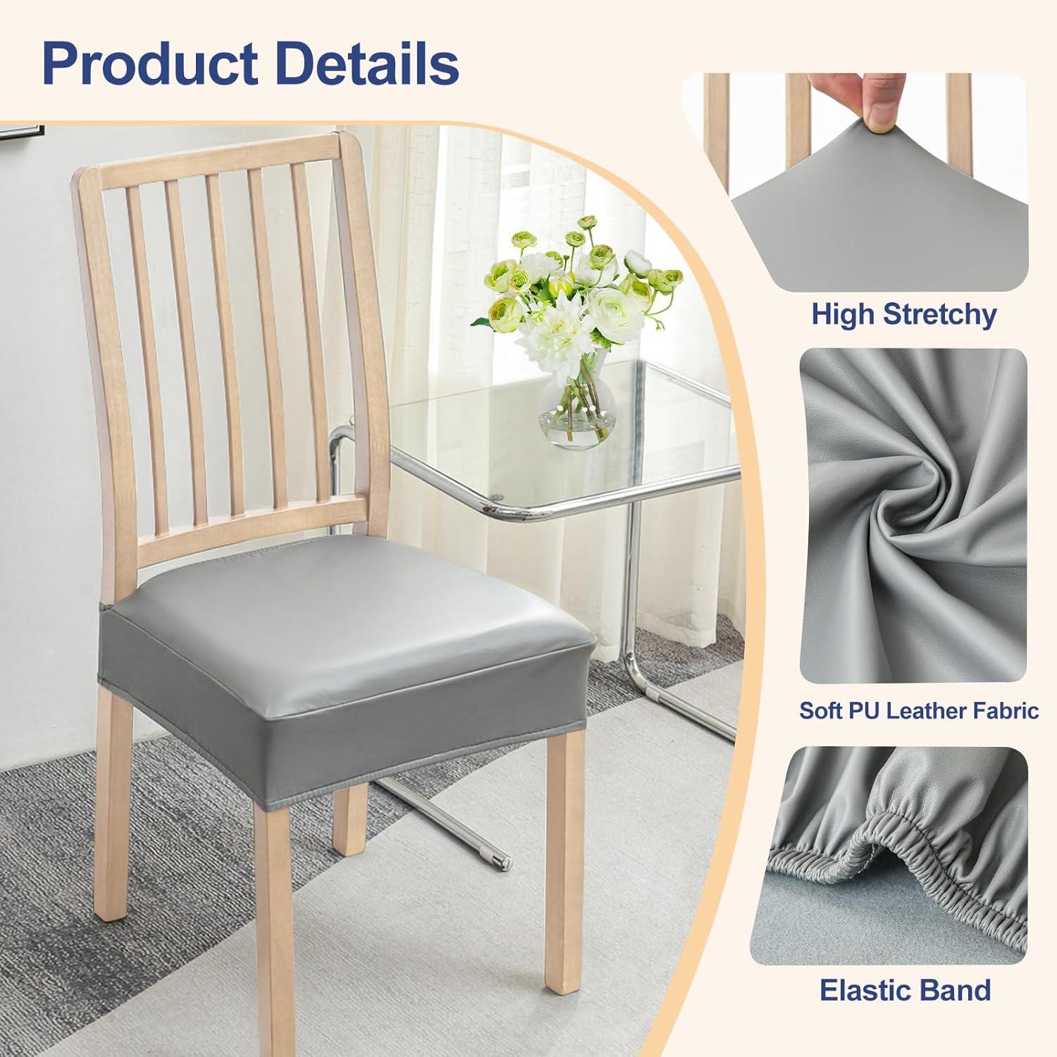 [High Quality Fabric] These pu leather chair covers for dining chairs with polyester-spandex blend backing, soft, sturdy and long-lasting. High-stretch can fit most chairs. Dining chair seat covers are suitable for upholstered chairs, a variety of vibrant solid colors give your old chair a fresh new look