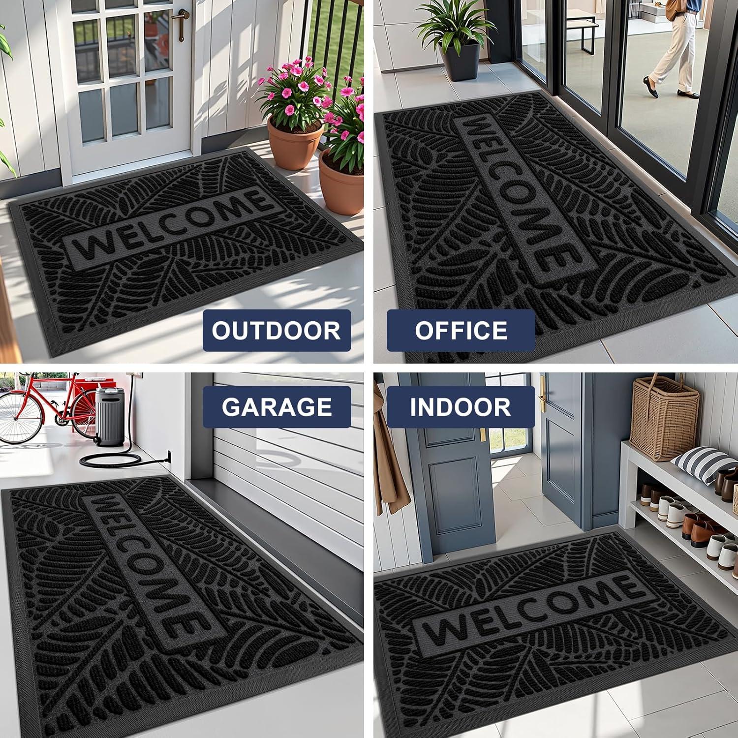 Smiry Welcome Mat Indoor Outdoor, All-Season Waterproof Front Door Mat, Sturdy Natural Rubber Doormat, Non-Slip, Easy Clean, Low Profile Dirt Trapper for Porch Patio Entrance, 29.5x17, Black