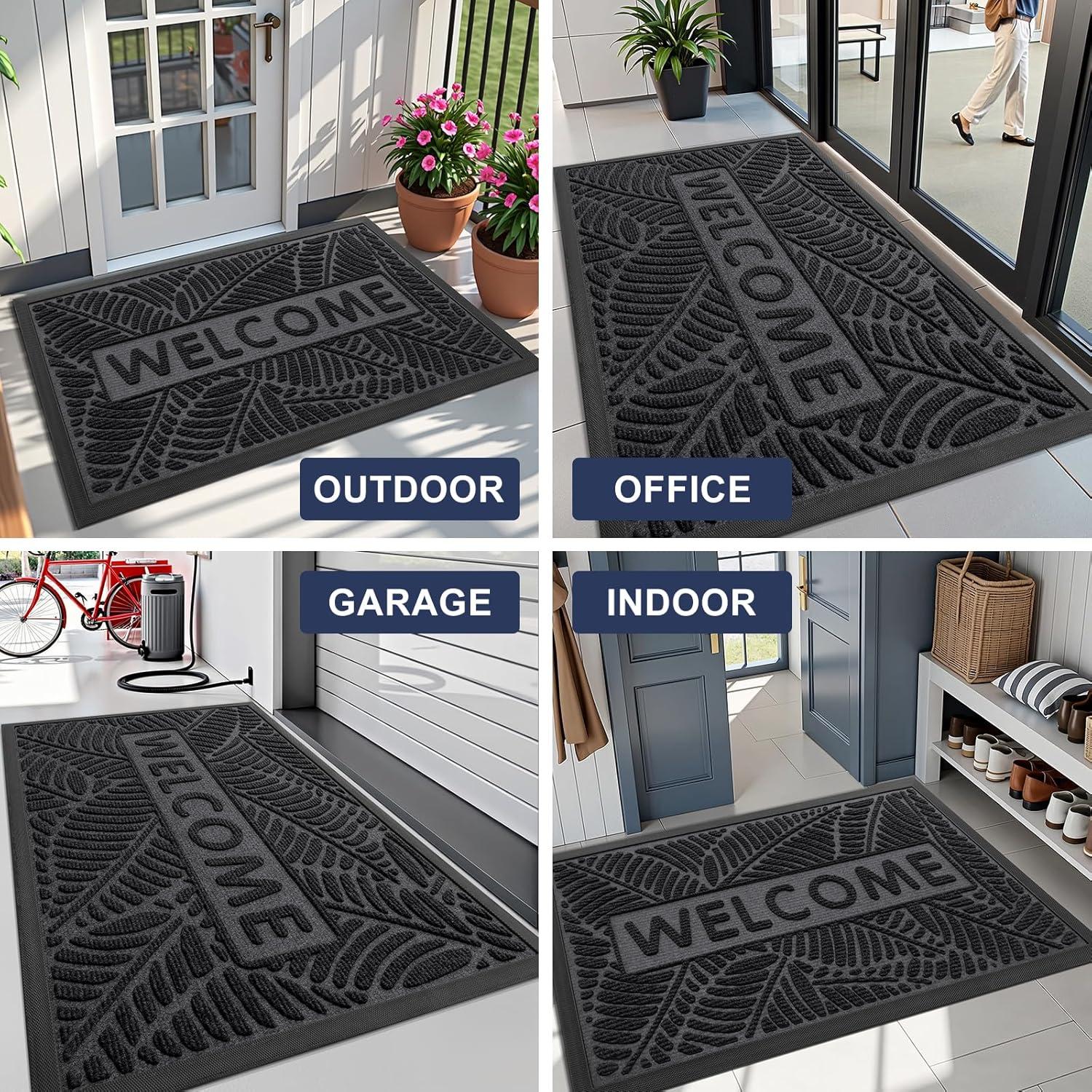 Smiry Welcome Mat Indoor Outdoor, All-Season Waterproof Front Door Mat, Sturdy Natural Rubber Doormat, Non-Slip, Easy Clean, Low Profile Dirt Trapper for Porch Patio Entrance, 29.5x17, Grey